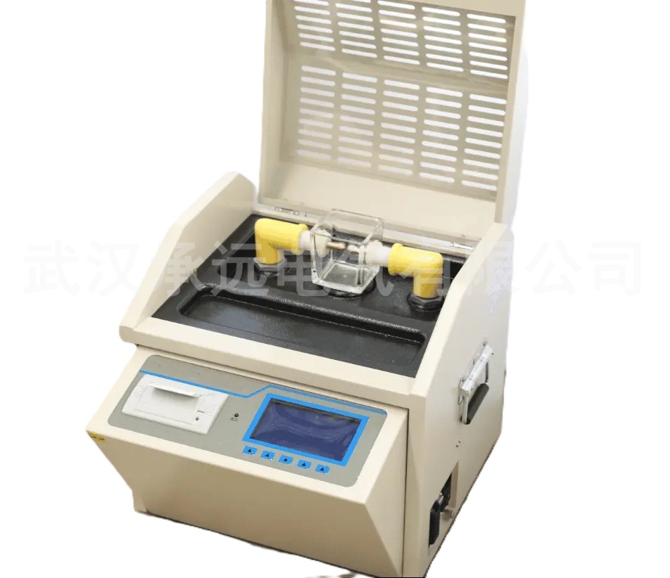 2、每个油样,每次击穿电压值和轮回次数会自动存储,试验完成后,热敏打印机可打印出各油样各次击穿电压值和平均值。